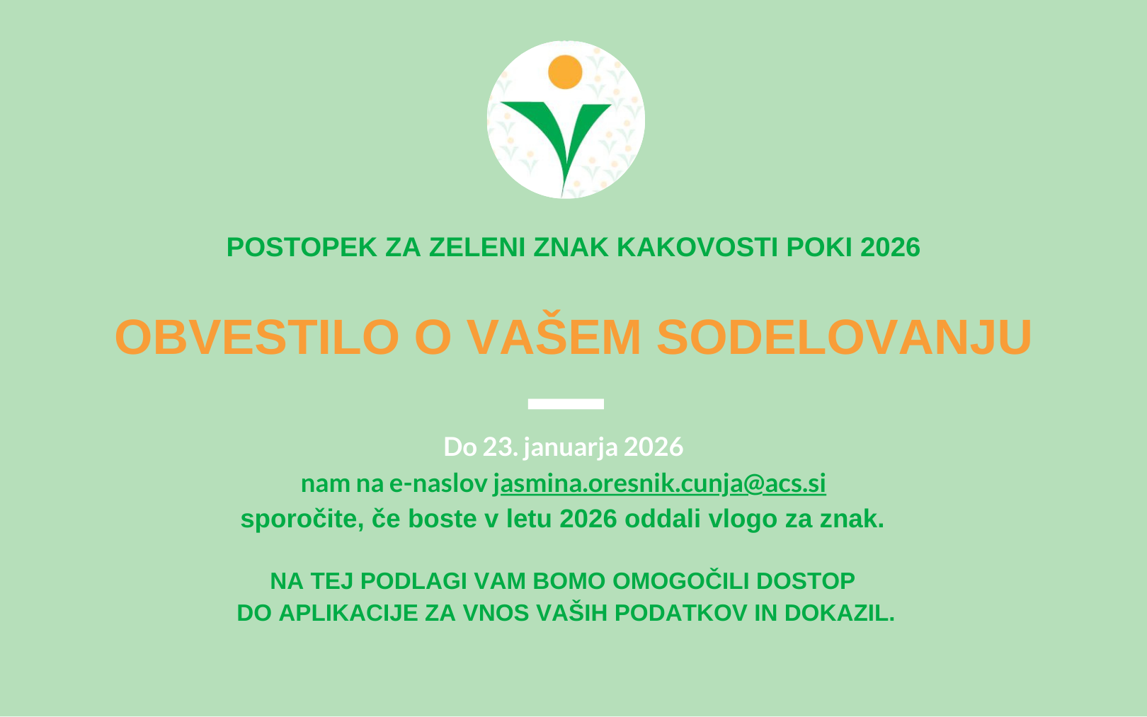 Javno povabilo za sodelovanje v postopku za podaljšanje ali pridobitev Zelenega znaka kakovosti POKI